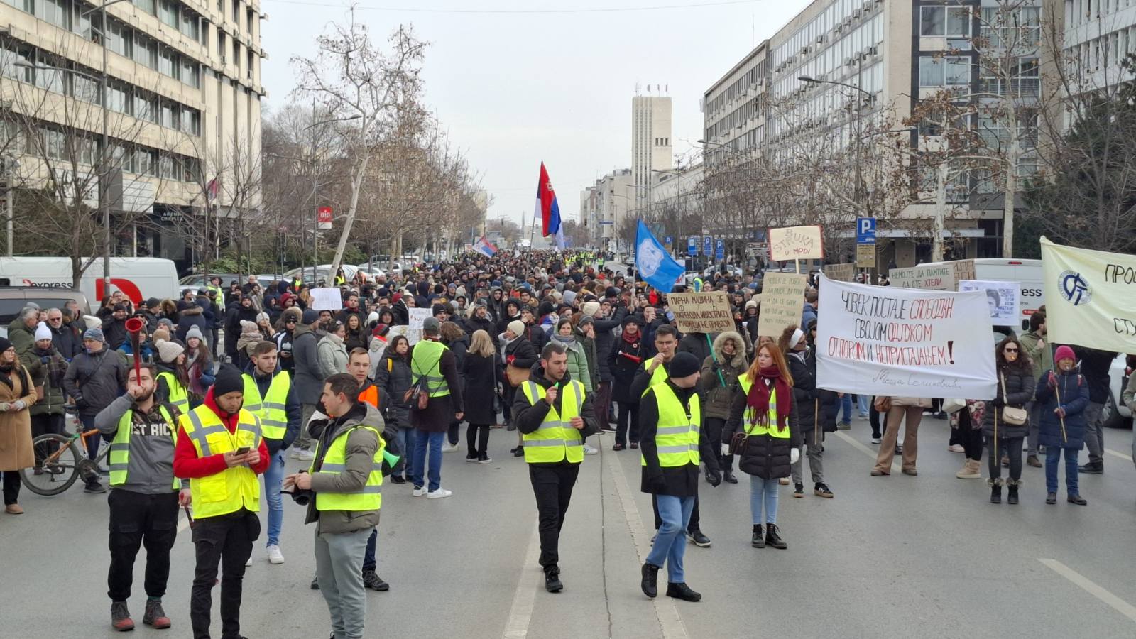 Studenti su krenuli iz kampusa, roditelji od Futoške pijace, đaci i prosvetari sa Trga slobode, a predstavnici IT zajednice od DIF-a. Svi su se sastali na Bulevaru Mihajla Pupina.