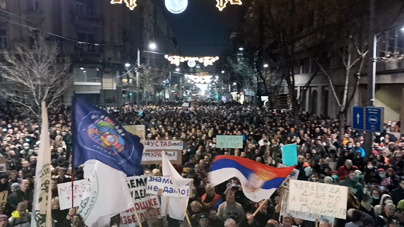 – Ovom borbom vratićemo dug precima, ali i potomcima ostaviti zalog, da nikad više oni koji upravljaju ovom državom ne dođu u iskušenje da je prodaju – jedna je od poruka koja se čula sa razglasa na protestu.