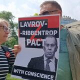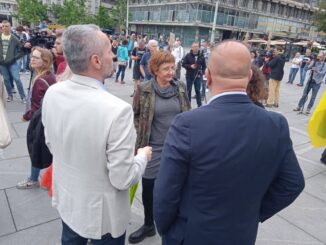 Među okupljenim aktivistima koji nose parole protiv rata viđeni su i Zoran Živković, Aida Ćorović, Biljana Stojković, Aleksandar Olenik…
