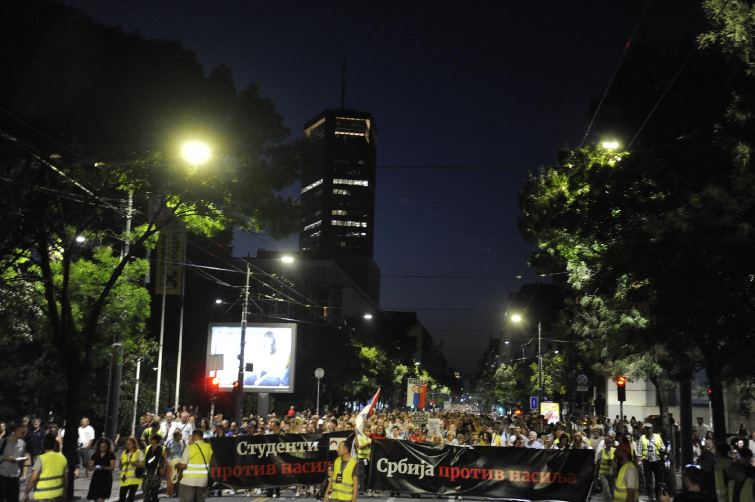Foto: FoNet/Ana PaunkovićProtest „Srbija protiv nasilja“, 18. po redu, završen je u subotu ispred zgrade u Nemanjinoj 22, u kojoj se nalazi ministarstva prosvete i pravde.