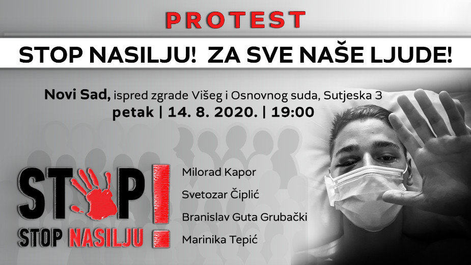 Protest „Stop nasilju! Za sve naše ljude!“ istim povodom održaće se ispred zgrade Višeg i Osnovnog suda u Novom Sadu (Sutjeska 3) u petak 14. avgusta, sa početkom u 19 časova.