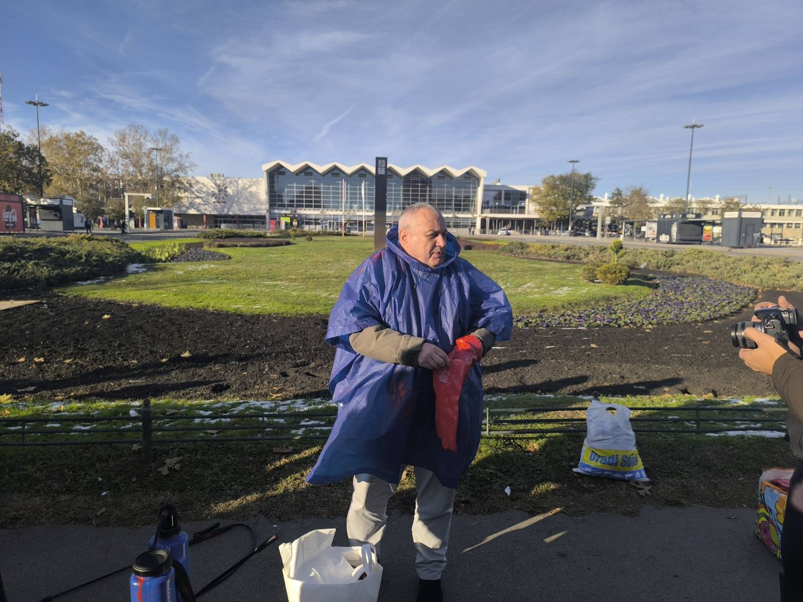 Milivojević je istakao da je farba neperiva. Napisao je „Bulevar krvavih ruku“.