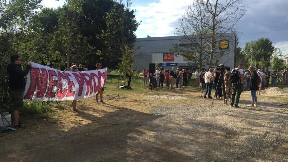 Pored Lidla, u Ulici 1.300 kaplara, okupilo se nekoliko desetina ljudi.