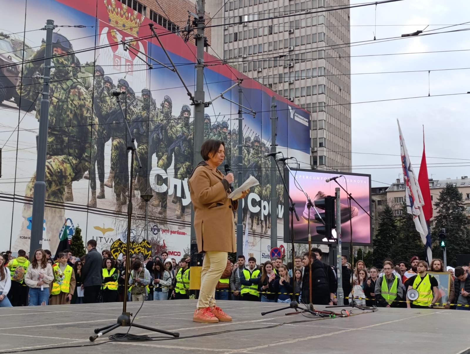 Dunja Stanojković, koja je govorila u ime studenata u blokadi, podsetila je na broj žrtava NATO bombardovanja.