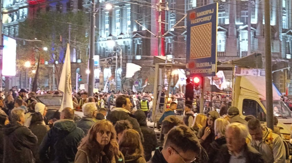 Na zgradi Generalštaba razvijen je transparent „Stižu nove generacije koje pamte ubice svoje nacije“, okupljeni građani i studenti uzvikuju dobro poznate uveredljive parole upućene bivšem američkom predsedniku Bilu Klintonu, i „Kosovo je Srce Srbije“.