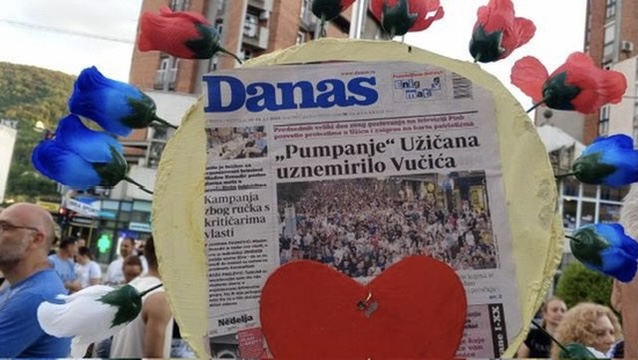 20.09 Na protestu u Užicu mogla se videti i naslovna strana novina Danas, na kojoj se upravo pisalo o njihovim okupljanjima.