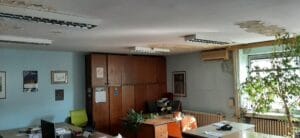 „Oko zgrade je postavljena žuta traka jer otpadaju delovi fasade. Krov odavno prokišnjava zbog čega su neke kancelarije morale da budu iseljene jer nema uslova za boravak u njima, jer je vlaga nagrizla električne instalacije“, prepričava Šper situaciju u zgradi preko puta SPENS-a.