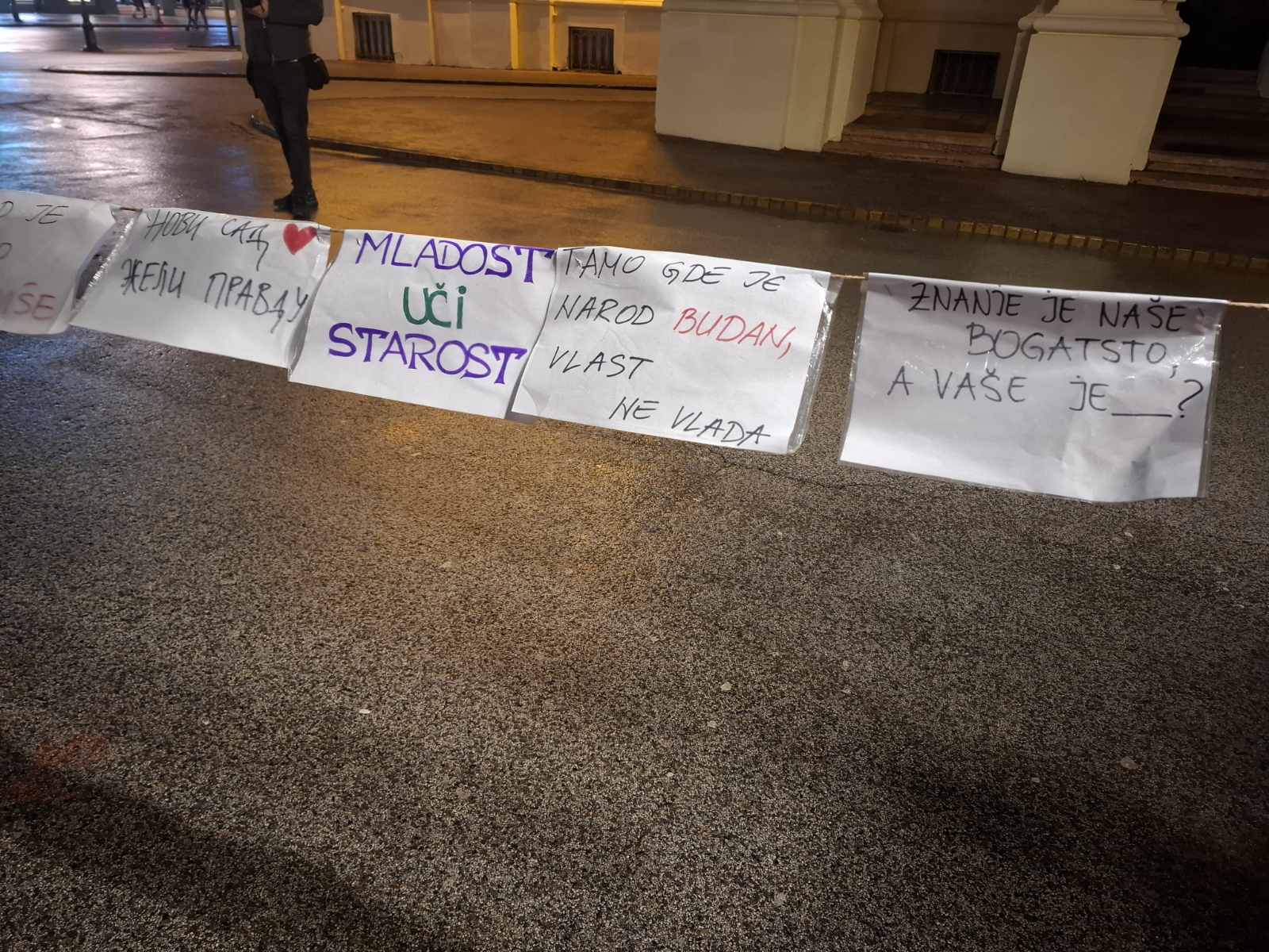 Trenutno je nekoliko stotina ljudi na Trgu slobode i ostavljaju na razvučenom štriku poruke upućene vlastima. Očekuje se obraćanje lekara.