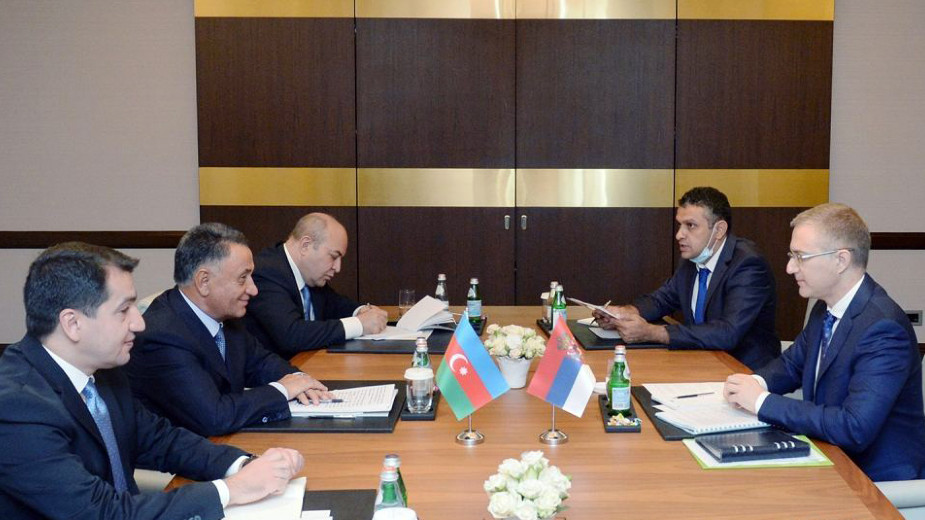 Sastanak u Bakuu Foto: MUPMinistar unutrašnjih poslova Nebojša Stefanović razgovarao je danas u Bakuu sa sekretarom Saveta bezbednosti Republike Azerbejdžan Ramilom Usubovim i Hikmetom Hajijevim, savetnikom predsednika Azerbejdžana o saradnji dve zemlje naročito u oblasti bezbednosti.