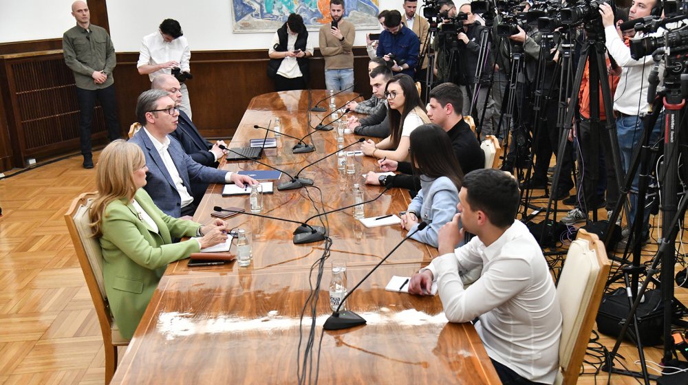 foto (BETAPHOTO/MILAN ILIĆ)Predsednik Srbije Aleksandar Vučić je danas na sastanku u Predsedništvu zamolio studente koji žele da uče da ne stupaju u štrajk glađu, koji su poručili da će o tome razmisliti.