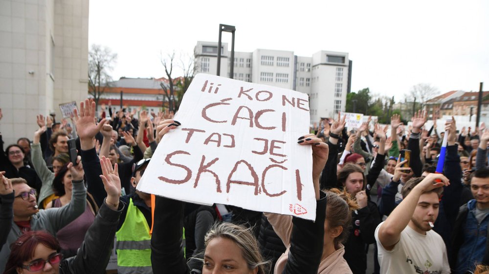 foto (BETAPHOTO/DRAGAN GOJIĆ)Studenti u blokadi Univerziteta u Novom Sadu pozvali su večeras na protest ispred zgrade suda i tužilaštva, koji će početi sutra u 11 sati, gde će zatražiti oslobađanje, kako su rekli, „političkih zatvorenika“, prenosi Beta.