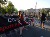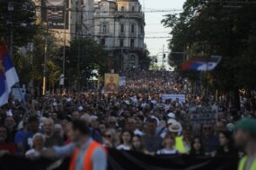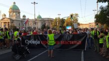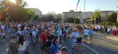 Građani su se po velikoj letnjnoj vrućini oko 19 časova okupili ispred Narodne Skupštine odakle su krenuli u štenju koja je išla pored palate pravde do Mostarske petlje.