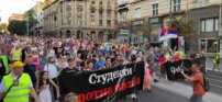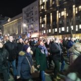 Foto: FoNet/Ana PaunkovićVečeras je u Beogradu održan jedanaesti po redu protest „Srbija protiv nasilja“, a tema večerašnjeg protesta je bilo pravosuđe pa se protestna šetnja u jednom trenutku zaustavila ispred Palate pravde.