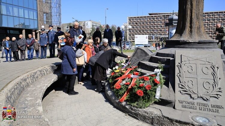 Foto: Grad KragujevacPolaganjem venaca i cveća kraj spomenika Uspenje u Kragujevcu je danas obeležena 23. godišnjica od početka NATO bombardovanja Savezne Republike Jugoslavije i odata pošta Kragujevčanima koji su stradali tokom NATO agresije i oružanih sukoba od 1990. do 1999. godine na prostoru bivše Jugoslavije.