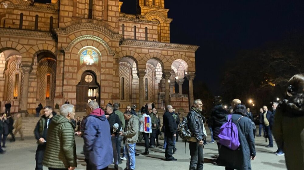 Foto: N1Prijatelji i članovi porodice uhapšenog urednika portala Srbin.info Dejana Petra Zlatanovića i vođe desničarske organizacije Narodne patrole Damnjana Kneževića, večeras su na protestnu ispred crkve Svetog Marka u Beogradu zatražili njihovo puštanje na slobodu.