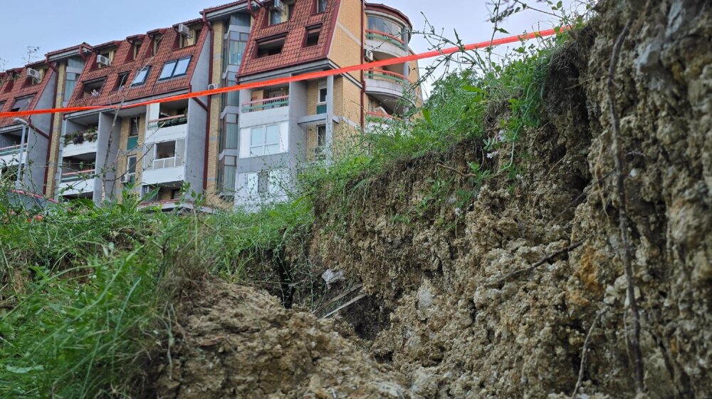 Foto: FoNet/Marko DragoslavićUsled izgradnje stambeno-poslovnog kompleksa u Darvinovoj ulici 30-36 na Voždovcu, danas je došlo do odrona zemlje i stvaranja kratera, koji se proteže do parkinga okolnih zgrada.