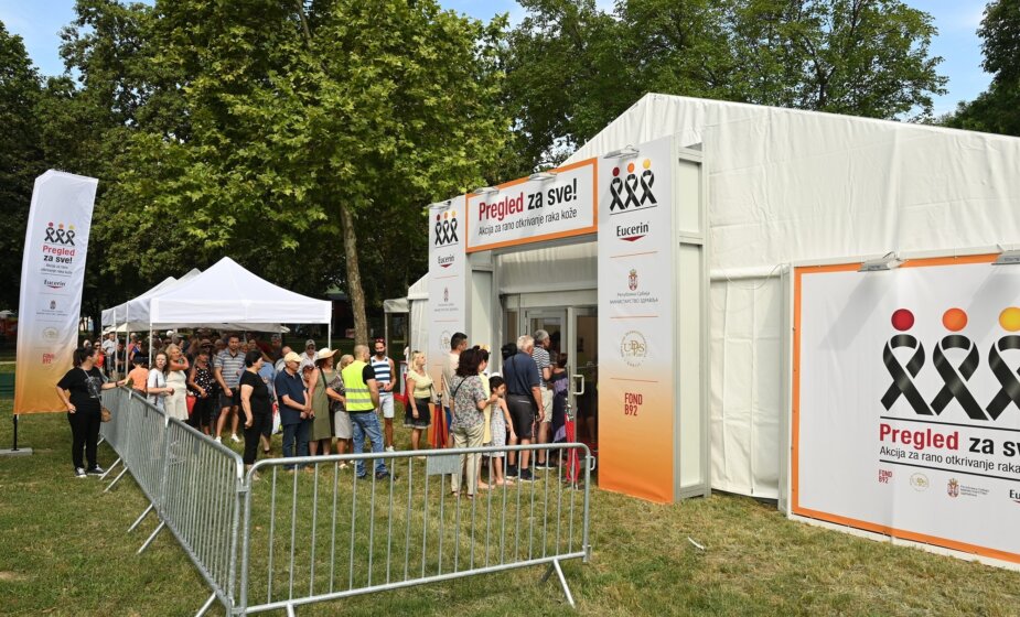 Foto: Pregled za sve/Eucerin SrbijaNa besplatnim dermoskopskim pregledima organizovanim u subotu na Adi Ciganliji, 20 dermatovenerologa iz Vojnomedicinske akademije (VMA), Kliničkog centra Srbije i Gradskog zavoda za kožne i venerične bolesti pregledalo je 1.011 građana, saopštili su organizatori akcije „Pregled za sve“.