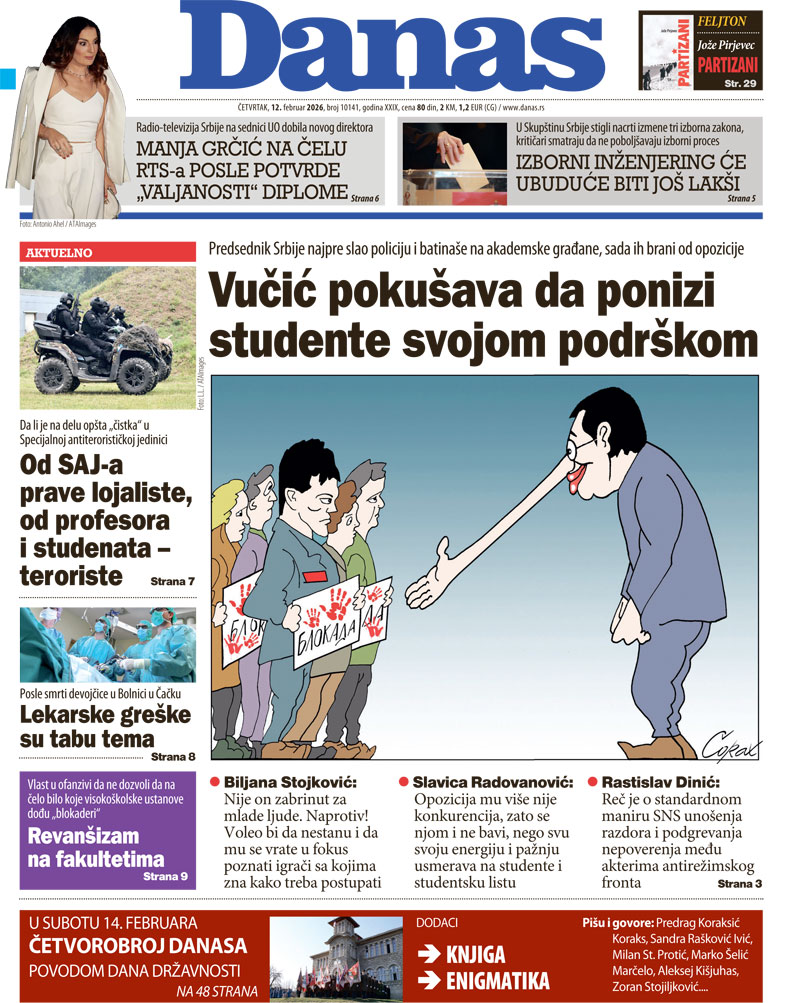 Pratite nas na našoj Facebook i Instagram stranici, ali i na X nalogu. Pretplatite se na PDF izdanje lista Danas.
