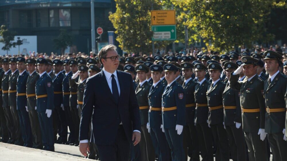 „Želim da verujem da će Vlada Srbije usvojiti tu odluku. Želim da verujem da svi razumete koliko nam je potrebna jaka vojska, koliko ćemo još morati da kupujemo naoružanja, da pravimo, stvaramo“, rekao je Vučić na promociji najmlađih potporučnika Vojske Srbije, svečanosti koja se održava ispred zgrade Skupštine Srbije.