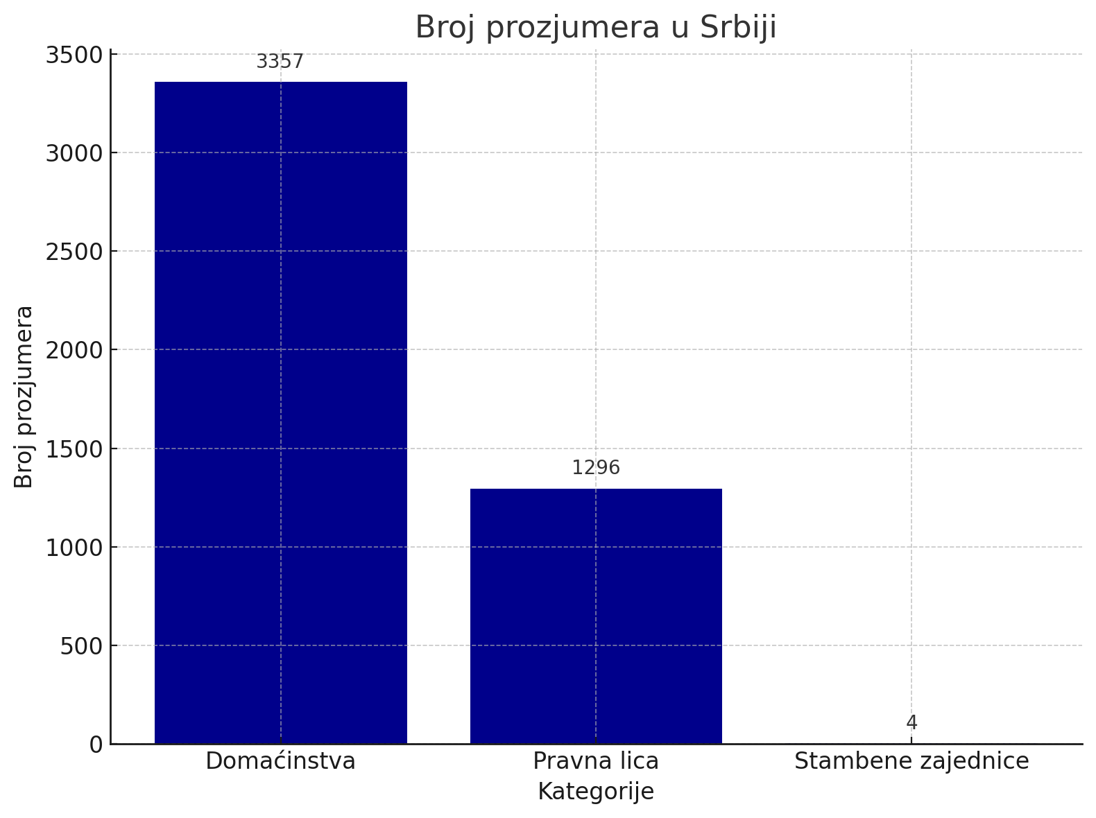 Najbrojniji prozjumeri su domaćinstva kojih trenutno ima nešto više od 3.300, zatim pravna lica kojih ima oko 1.300, a najnerazvijeniju kategoriju čine stambene zgrade kojih trenutno ima samo četiri.