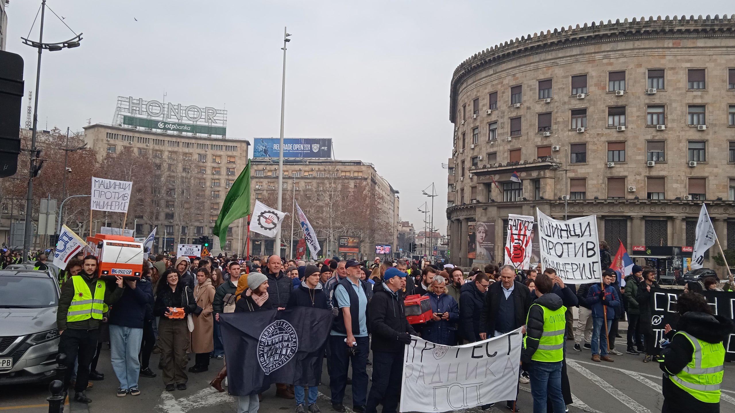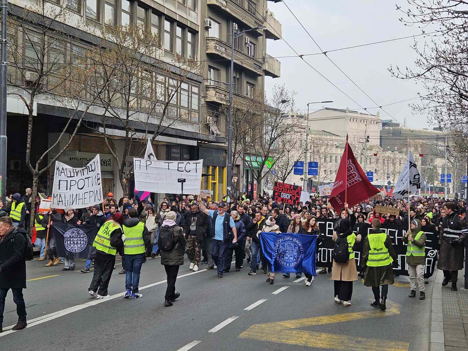 Takođe, radnicima se pridružilo i nekoliko stotina studenata uz poruku „Studenti su uz radnike“.