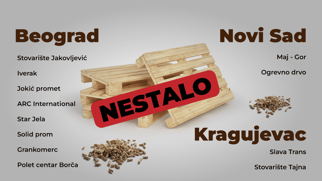 Na telefone desetak stovarišta i radnji za prodaju peleta u Beogradu i pored upornog zvanja niko nam se nije javljao ili su mobilni aparati bili isključeni. U nekima smo imali više sreće te smo pronašli sagovornike ali svi do jednog su nam rekli da peleta u njihovim trgovinama nema. Takav odgovor smo dobili u Stovarištu Jakovljević, Iverak, Jokić prometu, ARC International, TR. Star Jela, Solid Promu, Grankomercu i Pelet centru Borča.