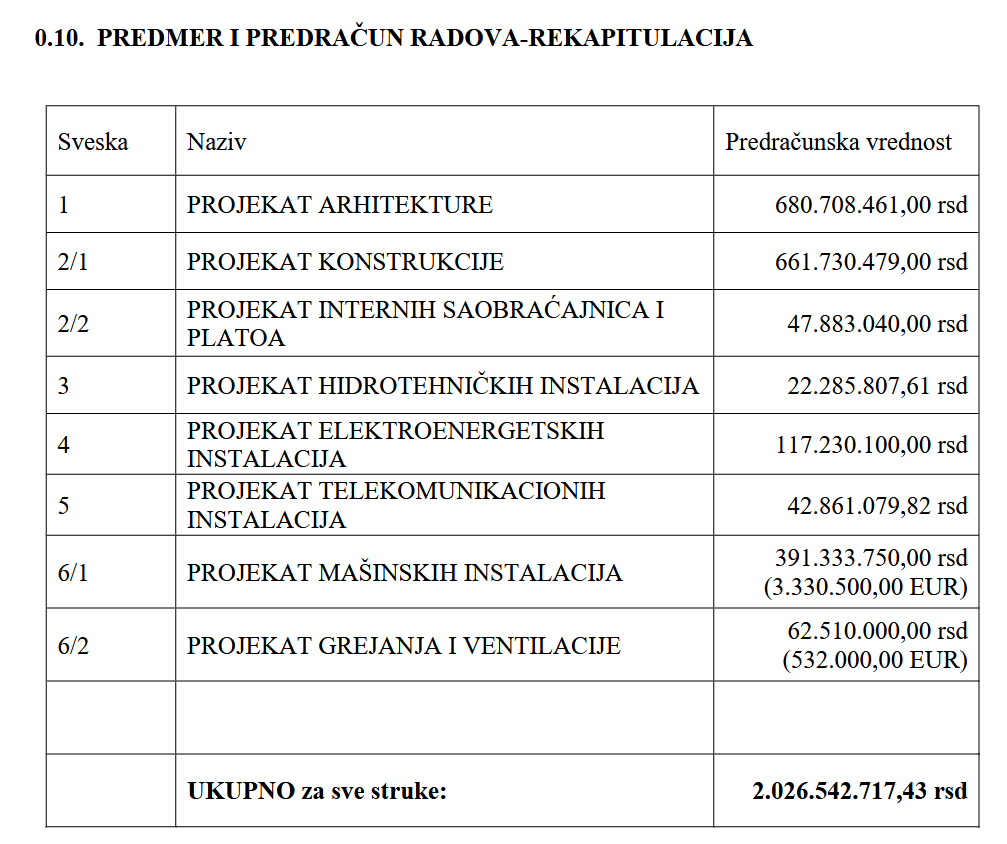 Procenuje se da je cena izgradnje ovog projekta oko dve milijarde dinara.