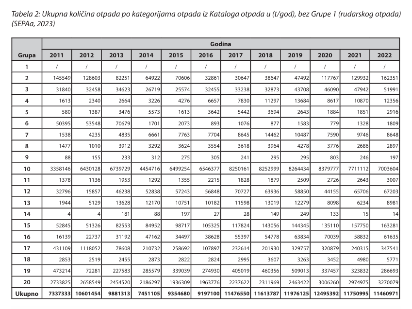Prema podacima Agencije za zaštitu životne sredine (SEPA), domaćinstva i privreda u Srbiji u 2022. godini proizvela su oko 12 miliona tona smeća, a sa rudarskim sektorom oko 180 miliona tona.