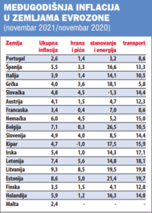 Pri tom je malo pomešao brojke, jer se predviđenih 3,5 procenta, koji su u međuvremenu, do kraja godine izrasli u četiri, odnosi na prosek rasta cena tokom cele 2021. Podatak za Evropsku uniju potiče iz objavljene stope međugodišnje inflacije, koja je u novembru prošle godine iznosila 5,2 odsto za sve zemlje EU, odnosno 4,9 procenta za države iz evrozone.
