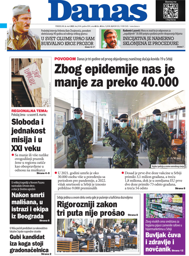 Pratite nas na našoj Facebook i Instagram stranici, ali i na X nalogu. Pretplatite se na PDF izdanje lista Danas.