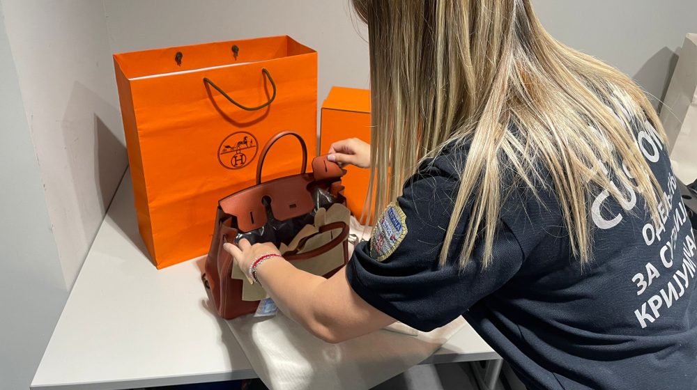 Službenici Odeljenja za suzbijanje krijumčarenja su 17. jula u prtljagu putnika pronašli i do odluke suda zadržali neprijavljenu žensku torbicu marke „Hermes Birkin 30“ vrednu više od 22.000 evra.