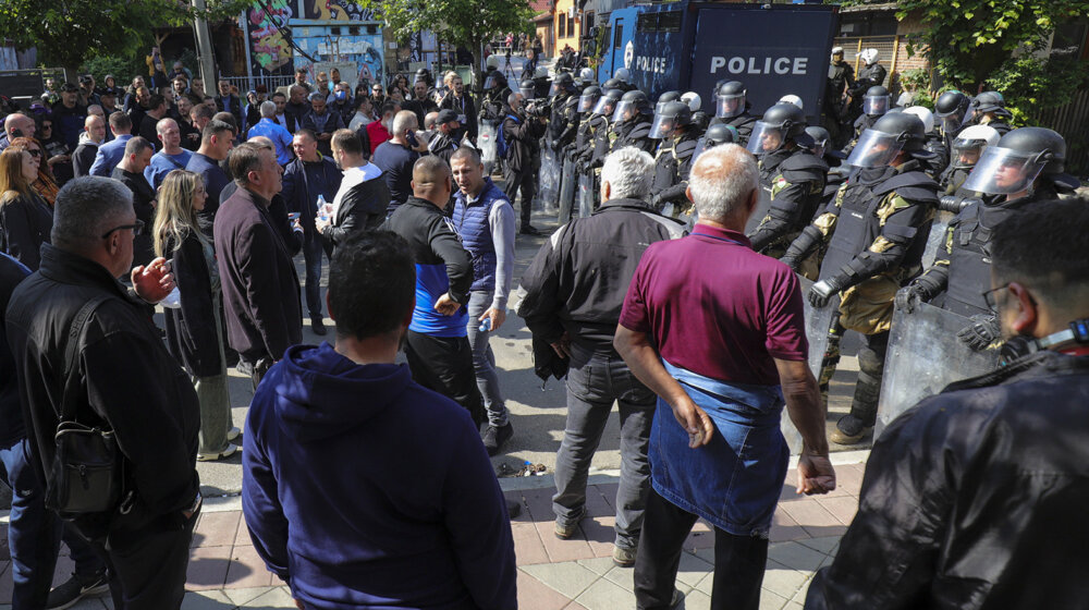foto BETAPHOTO (AP Photo/Bojan SlavkovićKosovska policija bacila je jutros suzavac na zaposlene u opštini Zvečan koji su u više navrata pokušali da uđu u tu zgradu, a koje je prethodno KFOR propustio da prođu.