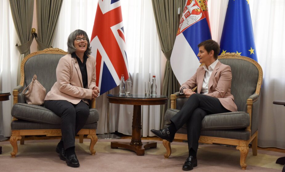 Foto: Beta/BETAPHOTO/VLADA SRBIJE/Peđa VuckovicPredsednica Vlade Srbije Ana Brnabić primila je danas u oproštajnu posetu ambasadorku Velike Britanije u Srbiji Šan Maklaud (Sian MacLeod) tokom koje su razgovarale o ekonomskoj saradnji i aktuelnoj situaciji na Kosovu.