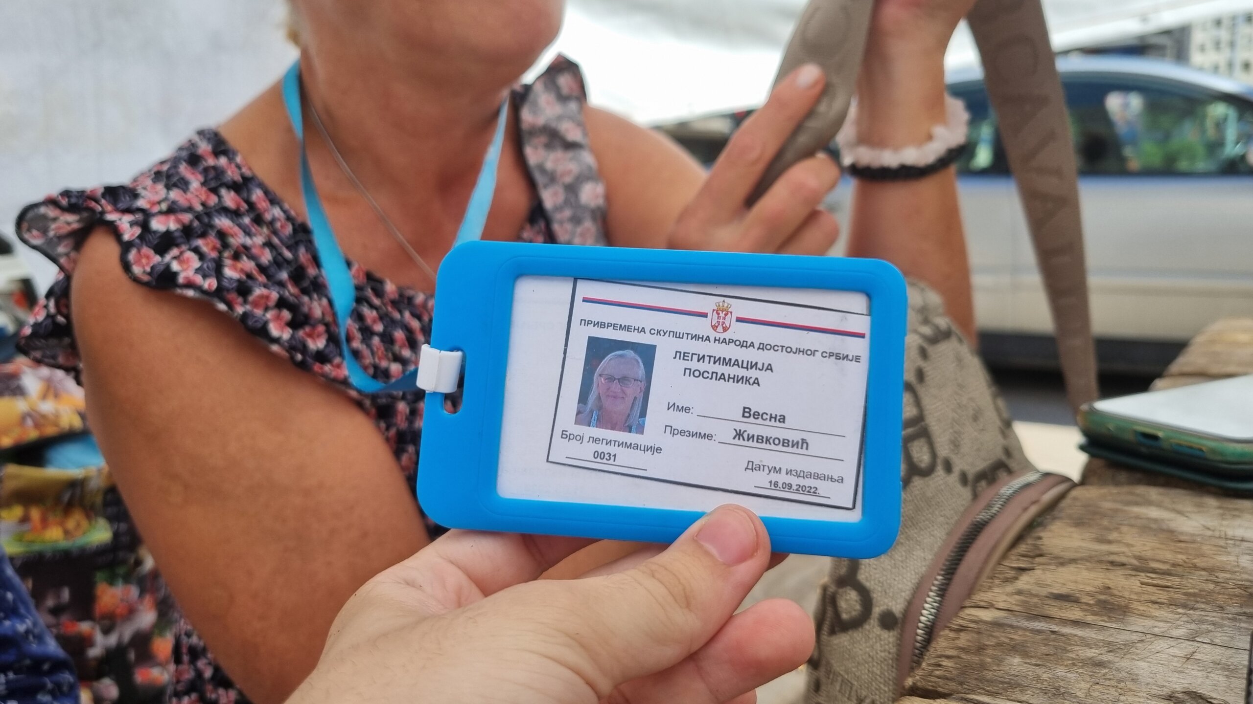 Legitimacija s brojem 0040 pripada Miletu Stankoviću, čoveku u maskirnim pantalonama koji se našem novinaru predstavio kao pukovnik u penziji. Pored njega sedi slučajni prolaznik, razgovaraju o tome zašto je potrebno da domaći mediji pišu na ćirilici.