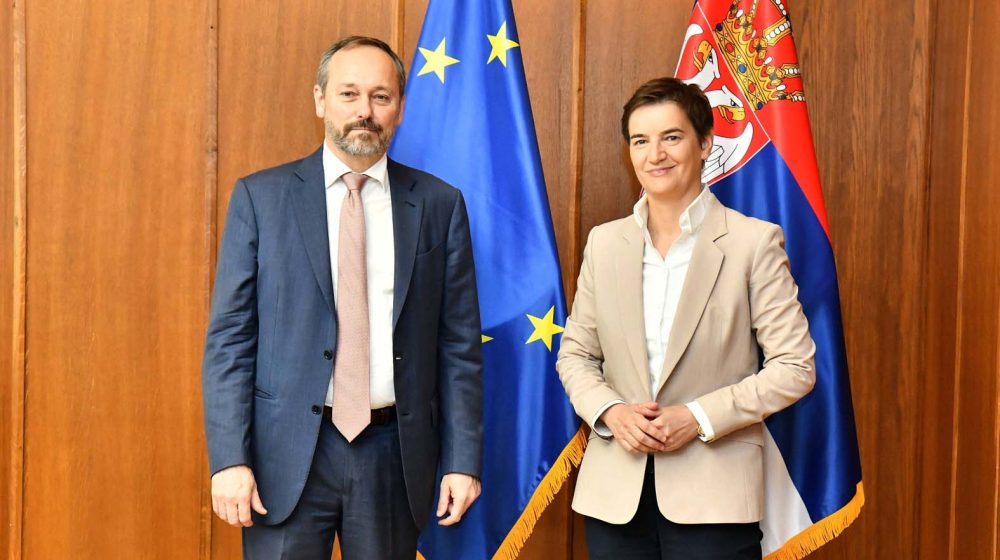 Predsednica Skupštine Srbije Ana Brnabić primila je u oproštajnu posetu šefa Delegacije EU u Srbiji Emanuelea Žiofrea, danas u Domu Narodne skupstine.