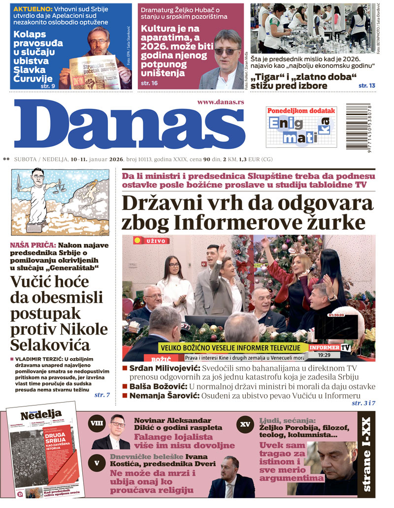 Pratite nas na našoj Facebook i Instagram stranici, ali i na X nalogu. Pretplatite se na PDF izdanje lista Danas.