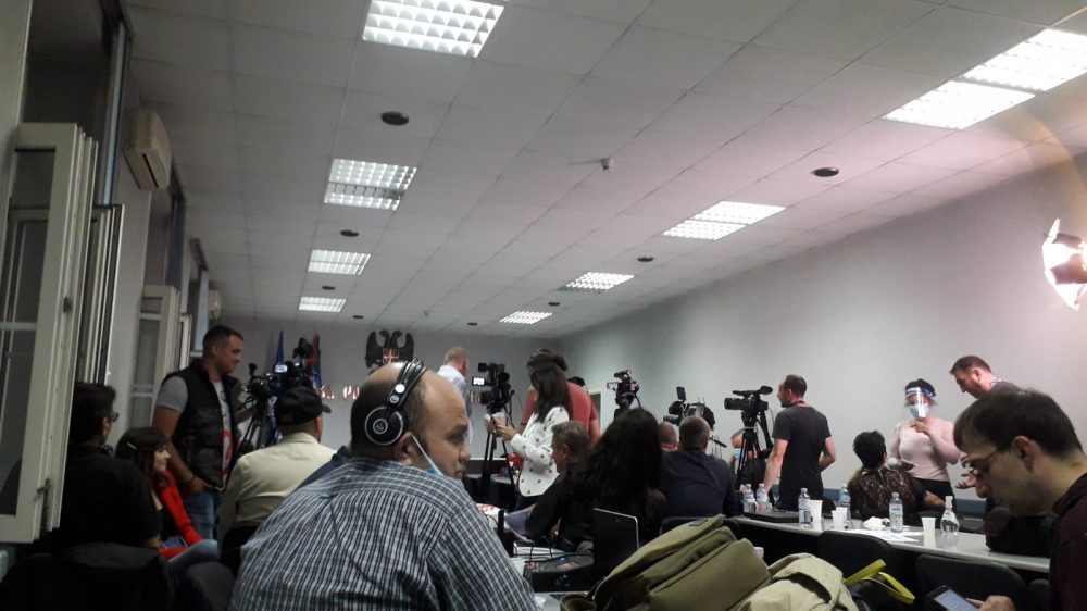 21.37 Novinari duže od 30 minuta čekaju najavljeno obraćanje predstavnika SRS-a, javlja Vuk Jeremić.