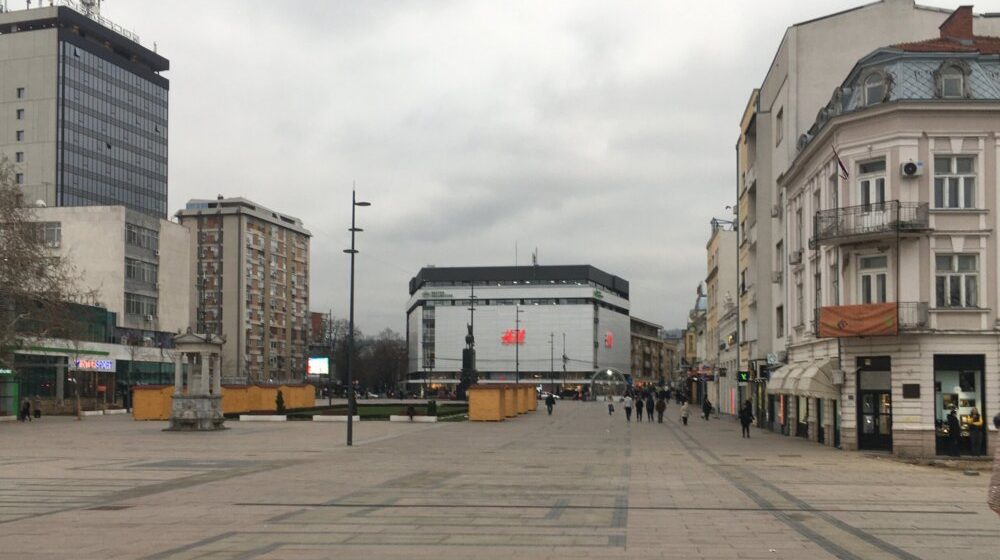 Saobraćaj u centru Niša je obustavljen a na trgu je više šlepera sa opremom iz kojih radnici istovaraju metalne šipke, ploče i druge delove bine.