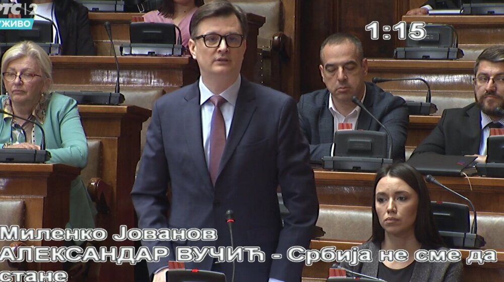 Foto: Printscreen RTS2Šef poslaničke grupe „Aleksandar Vučić – Srbija ne sme da stane“ Milenko Jovanvov istakao je danas, govoreći o ekspozeu mandatara za sastav Vlade Srbije Miloša Vučevića, da je važno „da se nastavi politika koju je predsednik Srbije Aleksandar Vučić definisao i prokrčio joj put“.