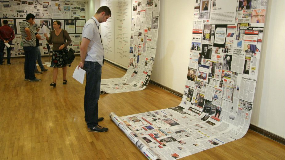 – Za građane je kritika vlasti nešto sasvim normalno i poželjno, a za podanike i sledbenike – to je jeres i sablazan. Pogotovo kada je sam vođa predmet kritike, karikature, satire ili tvita. Međutim, osnovna funkcija izložbe nije u podsećanju na ono što je objavljeno. Osnovna funkcija izložbe je zastrašivanje. Ne samo onih koji su to radili, da bi prestali to da rade, nego i onih koji bi se drznuli da u budućnosti to urade. A ponajviše onih koji bi mogli da počnu da razmišljaju. Oni su najopasniji. Upravo zbog toga, mi, eksponati sa izložbe, smatramo da ovu izložbu treba da vidi što više ljudi. Međutim, čak i to zalaganje da izložba ode u svaki grad i svako selo – vlast svojim neiscrpnim mehanizmima laži, označava kao naše zalaganje da se izložba zabrani. Ja bih dodao i to da treba da uđe u školske programe. Jer, suočavanje ljudi sa ovako ogoljenim mehanizmima manipulacije jedne autokratske vlasti je najdelotvorniji vid građanskog vaspitanja. I otpora, koji iz toga proizilazi. Tim pre, što će se ljudi prisetiti da ono što na izložbi nije izloženo – mnogo više govori protiv vlasti, od onoga čega na izložbi ima. Jer, količina materijala sa ove izložbe samo je kap u okeanu onoga što su pisali i kako su izveštavali vođini omiljeni tabloidi, dnevne novine i televizije sa nacionalnom frekvencijom. Koje su podešene na vođinu ličnu frekvenciju – ističe Jokanović.