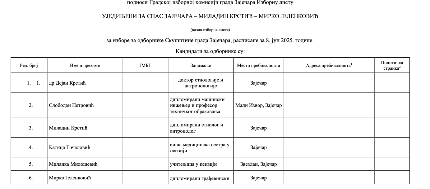 Ovo je ukupno treća izborna lista za zaječarske izbore.