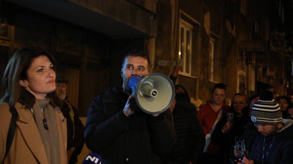 „Seli su na pod (u stanici) i neće izaći dok Željko ne bude pušten“, rekao je portparol pokreta Nikola Stanković okupljenima na protestu ispred stanice.