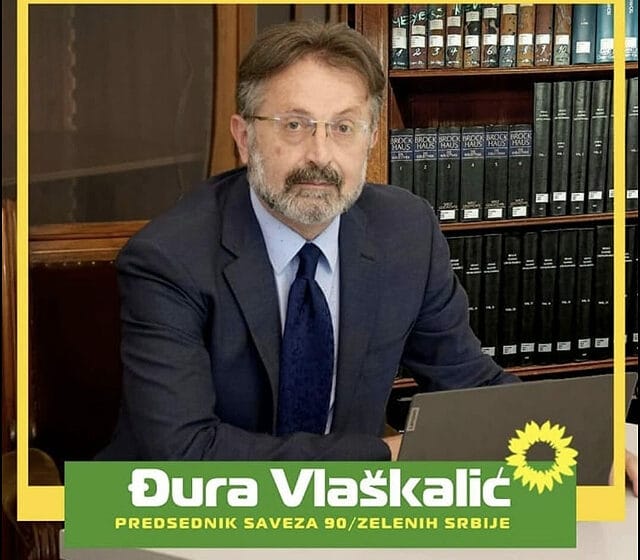 Đura Vlaškalić, Savez 90 zelenihOd juna meseca medijski se aktiviralo političko udruživanje pod nazivom Savez 90 zelenih Srbije, koje predovdi Đura Vlaškalić, nekadašnji član Demokratske stranke, prema dostupnoj biografiji zaposlen kao savetnik u Skupštini AP Vojvodina. Ovom Savezu pristupio je i bivši poslanik Goran Čabradi sa svojom Zelenom strankom, koja je izvorno bila registrovana kao stranka slovačke nacionalne manjine. Javnosti verovatno najpoznatiji aktivista novog udruživanja je Nenad Milić, nekadašnji zamenik ministra policije u vladi Zorana Đinđića i bivši istaknuti funkcioner Liberalno-demokratske partije Čedomira Jovanovića. Cilj im je da postanu parlamentarna stranka i odbacuju pretpostavku da su se pojavili kao pandan pokretu Aleksandra Jovanovića Ćute koji organizuje posećene ekološke proteste u Beogradu.