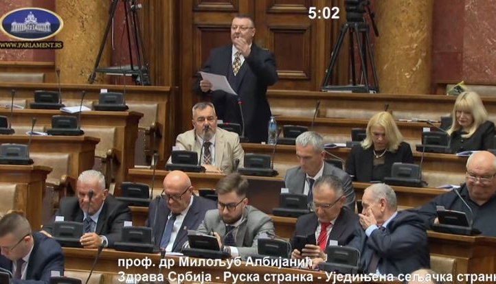 Govor poslanika Albijanića, iz poslaničke grupe Zdrava Srbija – Ruska stranka – Ujedinjena seljačka stranka nije bio u okvirima uobičajenih govora poslanika vladajuće većine.#Skupština pic.twitter.com/B0OfoQsoBk