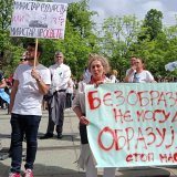 Oko 12.30 časova, prosvetari koji takođe protestuju pridružili su se predstavnicima opozicije.