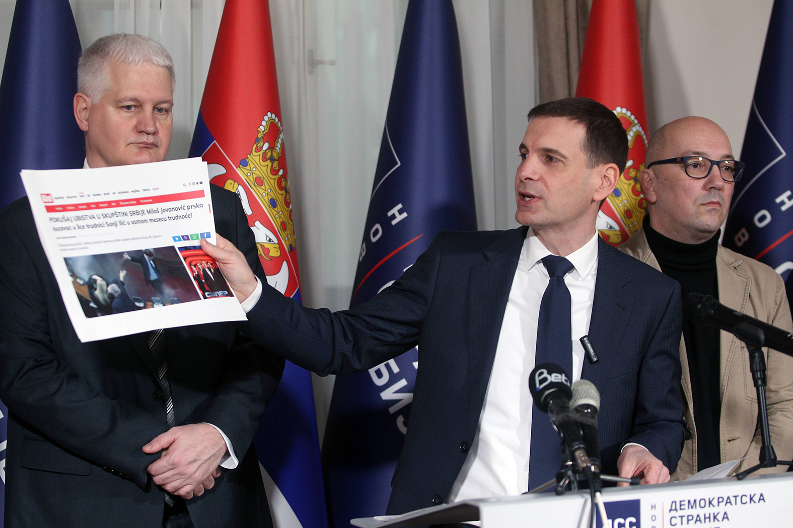 „A i oni znaju da su neistine, jer su istraživali godinama, ali nastavljaju da lažu po principu „da policajca ispred RTS nije udario žandarm, već studenti“, navodi lider NPS-a.