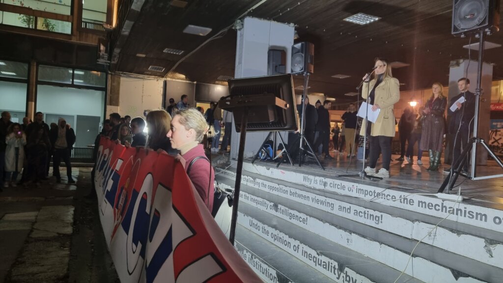 Marija Mijović iz humanitarne organizacije „Srpska omladina za Kosmet“ rekla je da je na protestu uprkos tome što će im humanitarni rad biti možda ugrožen.