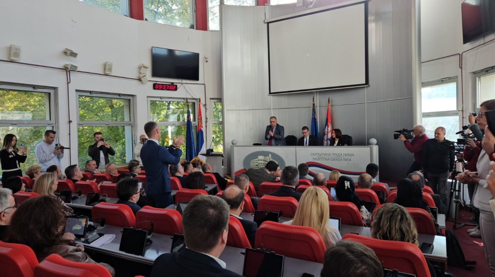 Petominutna vanredna sednica Skupštine grada Niša: Foto V. MilićevićN1 osuđuje neprimereno dodirivanje našeg novinara na konferenciji za novinare u Nišu.