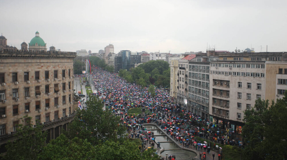 foto (BETAPHOTO/MILOŠ MIŠKOV)Protest Srbija protiv nasilja biće održan 3. juna, u 18 časova, zato što je to tačno mesec dana od tragedije koja se dogodila u osnovnoj školi Vladilav Ribnikar – saopštio je na konferenciji Miroslav Aleksić, poslanik Narodne stranke u Skupštini Srbije.