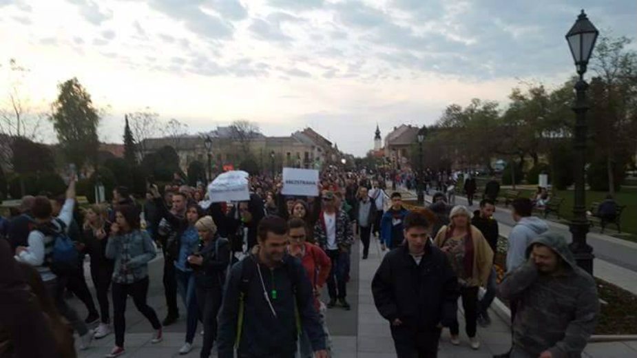 Njima su se pridružili i brojni profesori srednjih škola, kao i gradjani koji su zajedno sa njima demonstrirali na gradskom tgu i nakon toga išli u protestnu šetnju centralnim gradskim ulicama. Učesnici protesta su se posebno zadržali ispred zgrade lokalne samouprave, kao i ispred sedišta gradske organizacije SNS-a gde su uzvikivali „Ua, Vučiću“, „Vučiću, lopove“, „Hoćemo posao“. Učenici i studenti nosili su transparente na kojima je pisalo „Stop diktaturi“, „Preuzmi odgovornost, a ne sandvič“, „Sloboda medija“, „Vučić nije moj predsednik“.